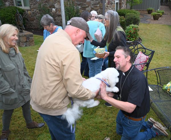 The St. Francis Chapter of the Daughters of the King sponsored the annual Blessing of the Animals on Sunday, October 26th. Always a lively event, several dogs of all shapes and sizes and even a few cats brought their people to join in the celebration! Pictured left, AWL Volunteer Sheri Koch watches as her dog is blessed by Rev. Dr. Keith Hearnsberger.