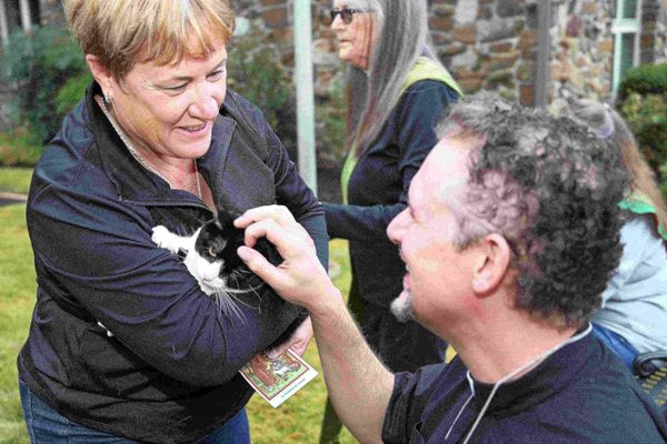 All pets also received treats and St. Francis medals. The event was an outreach ministry by Holy Trinity to benefit the Hot Springs Village Animal Welfare League. On the right, Bandita, who was adopted from the AWL by Cat Care Volunteer Becky Mason, waits patiently as she is blessed.